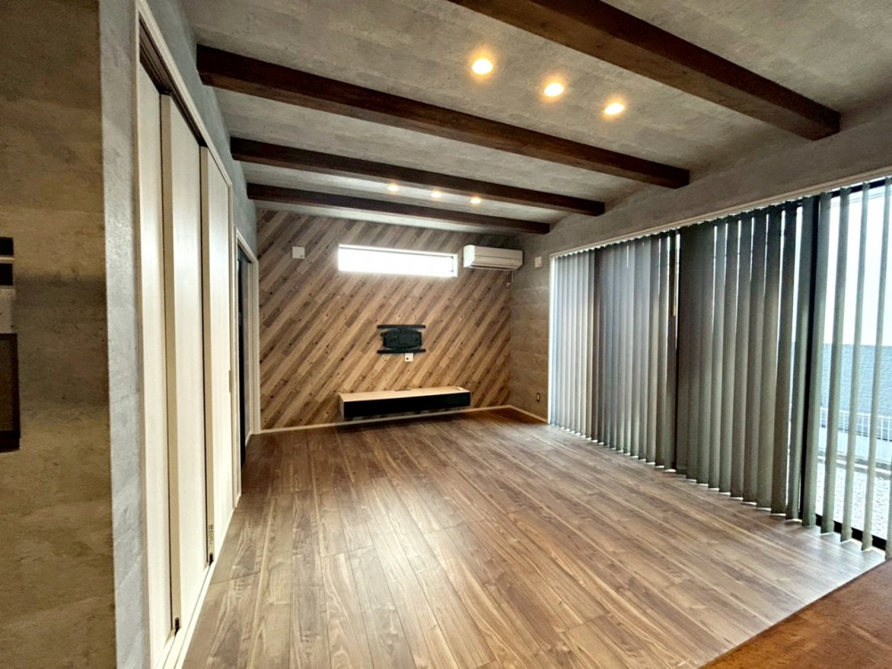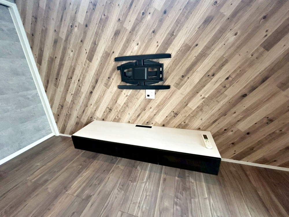 居間リビングには、壁掛けテレビ専用の金具が設置されています。スペースを広く活用できますね。