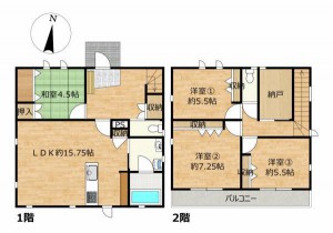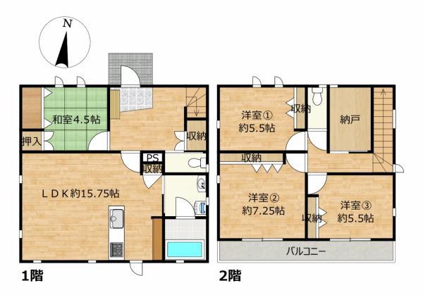 | 土地面積 | 166.33m²(50坪) | 建物面積 | 105.63m²(32坪) |